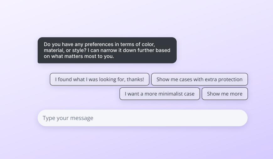 Quick Replies are clickable buttons generated by your Assistant after a response. They appear after a product-related question. Visitors can click a suggestion or freely type their message.