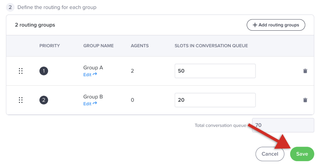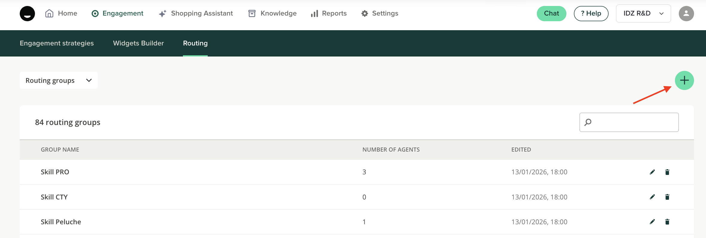 Go to Engagement > Routing and select Routing groups from the dropdown menu