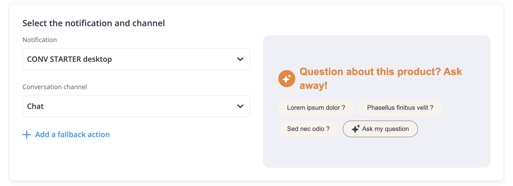 For embedded Conversation Starters, you can click on "Pick an element on the page" then select an element from your site or paste an HTML element directly manually.