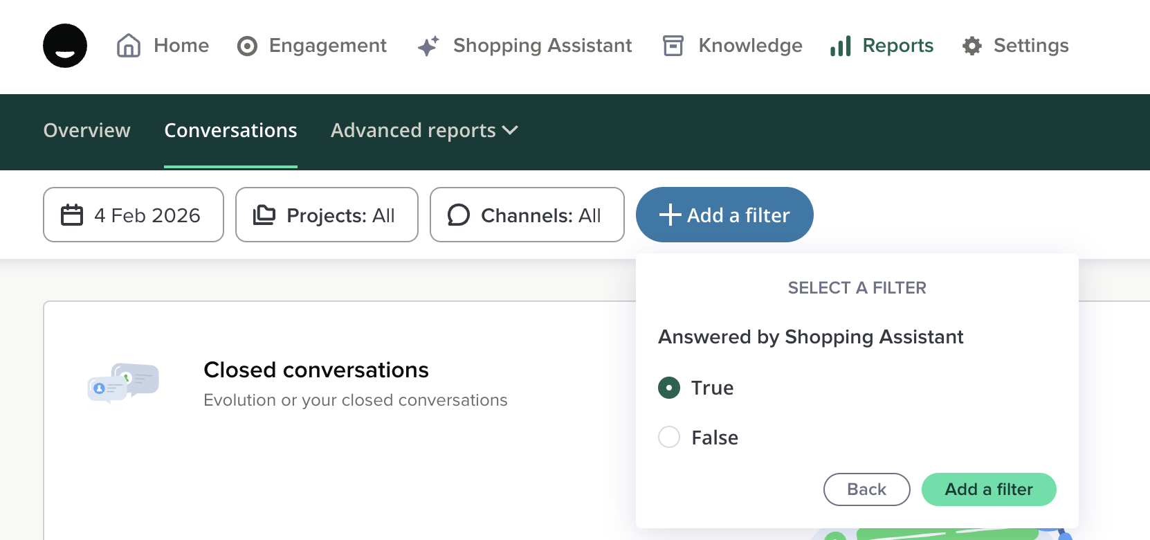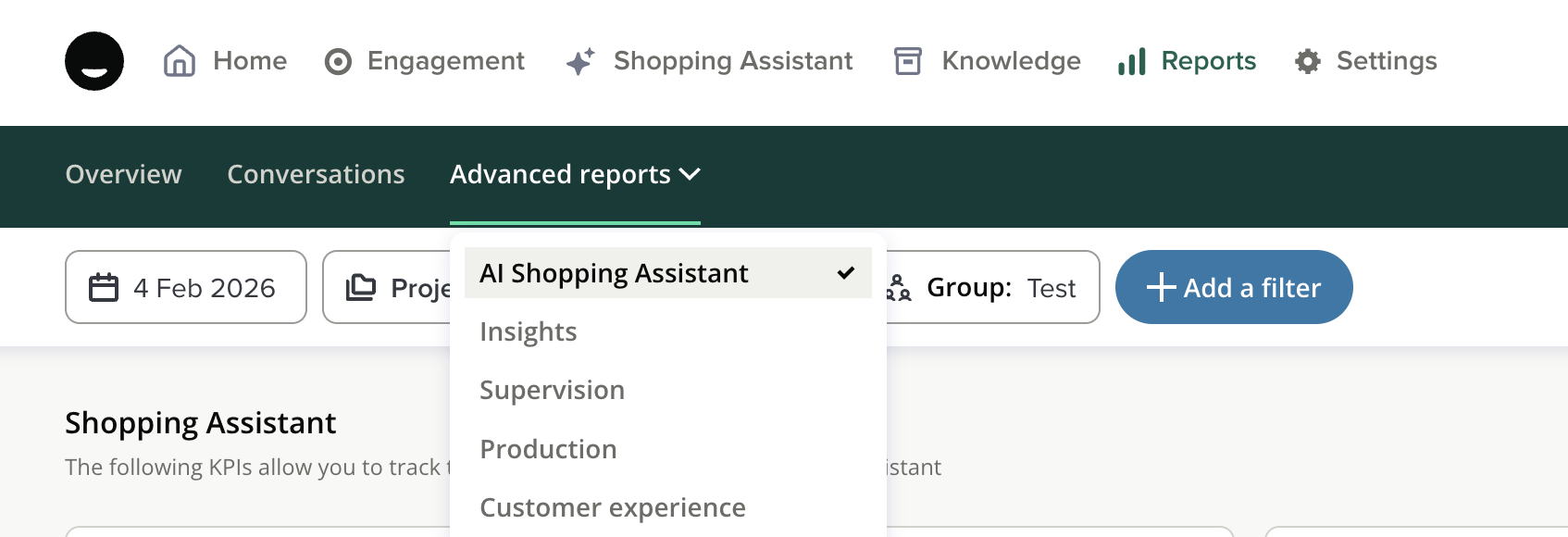 - Go to the Reports tab > Advanced reports > AI Shopping Assistant