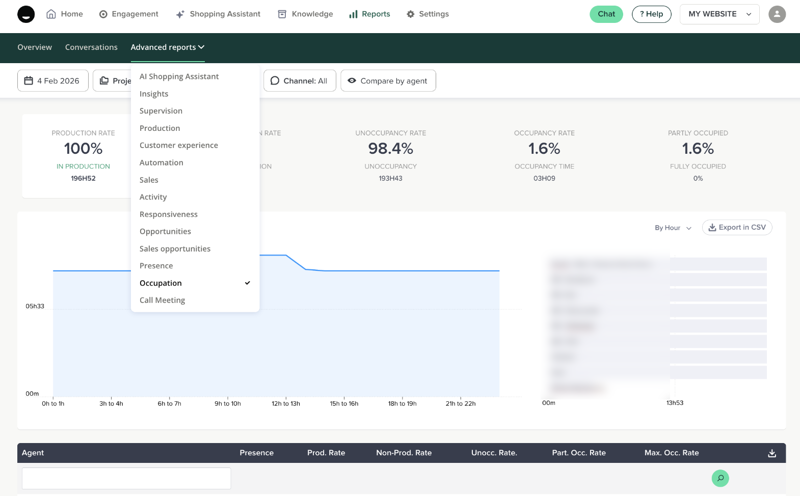 Follow the productivity of your agents from this page. You will find various indicators such as production rates, unoccupancy rates, etc.