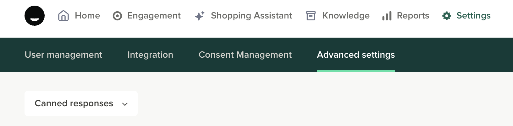 Canned responses are managed from the Content. Go to Settings > Advanced settings and select Canned responses in the dropdown menu :