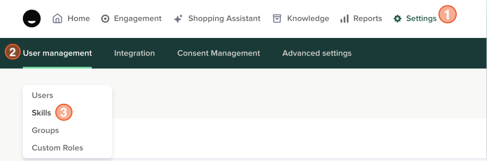 To edit or create a new group, select "Settings" > "User management" > and select "Skills".