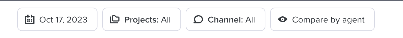 Filter data based on results desired. You can apply a filter per channel, type of view (agent, type of contact, group, rule, page type or transaction) and date.