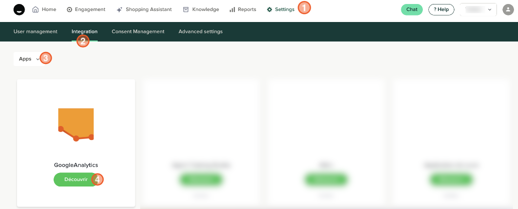 Go to the Settings > Integration > Apps tab and click on GoogleAnalytics