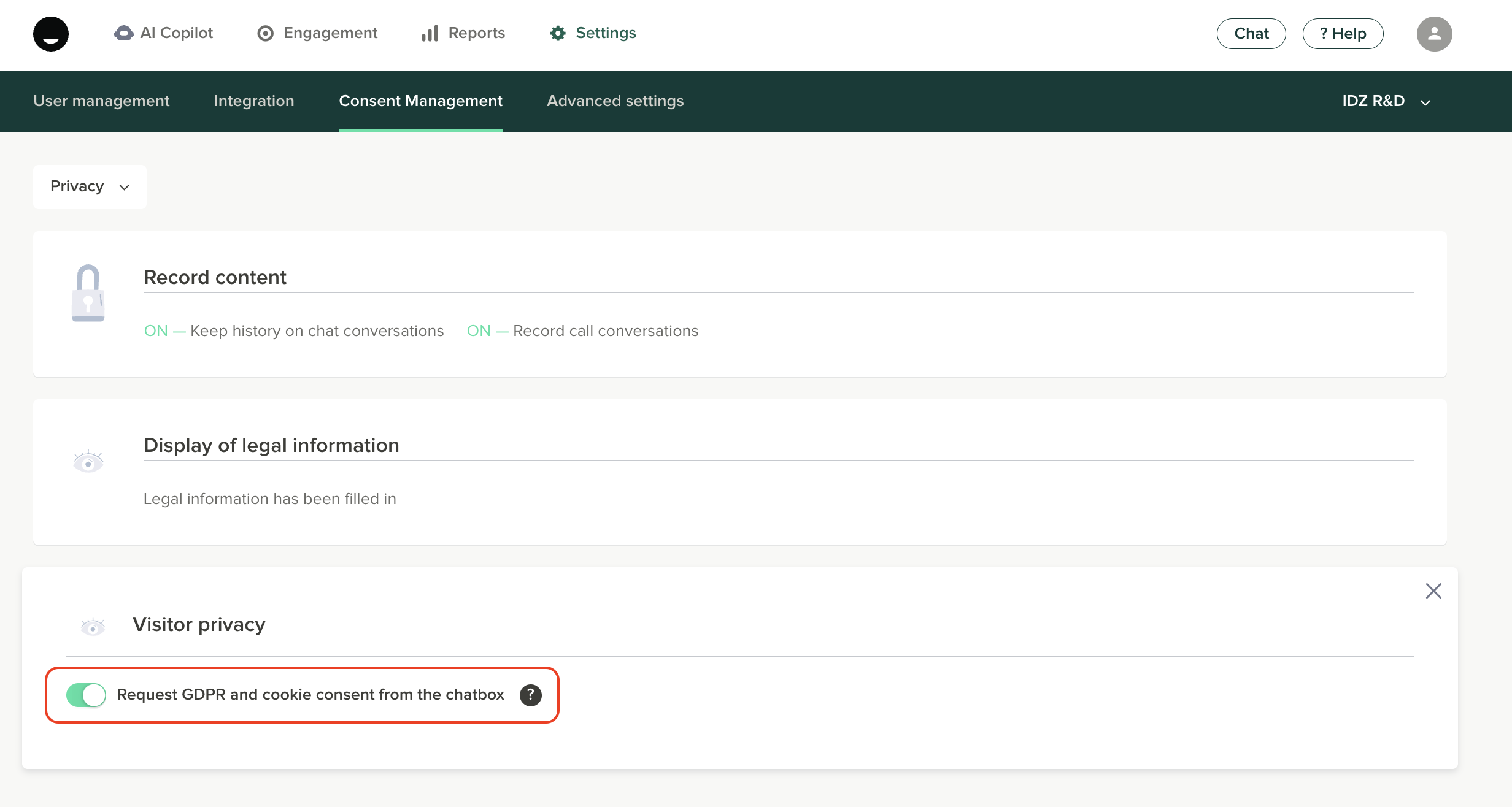 3. Enable legal consent in Settings > Consent Management > Privacy