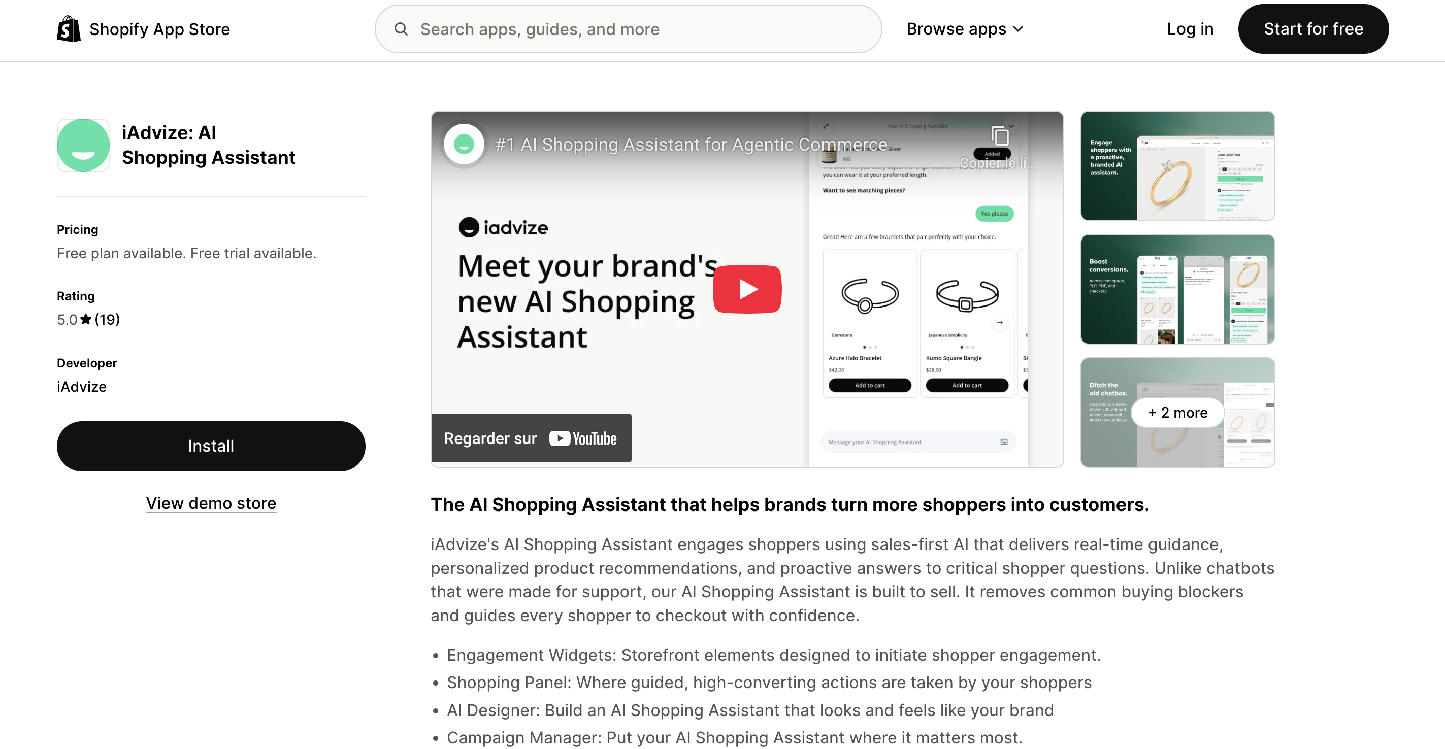 This button will automatically open the iAdvize app page on the Shopify App Store.