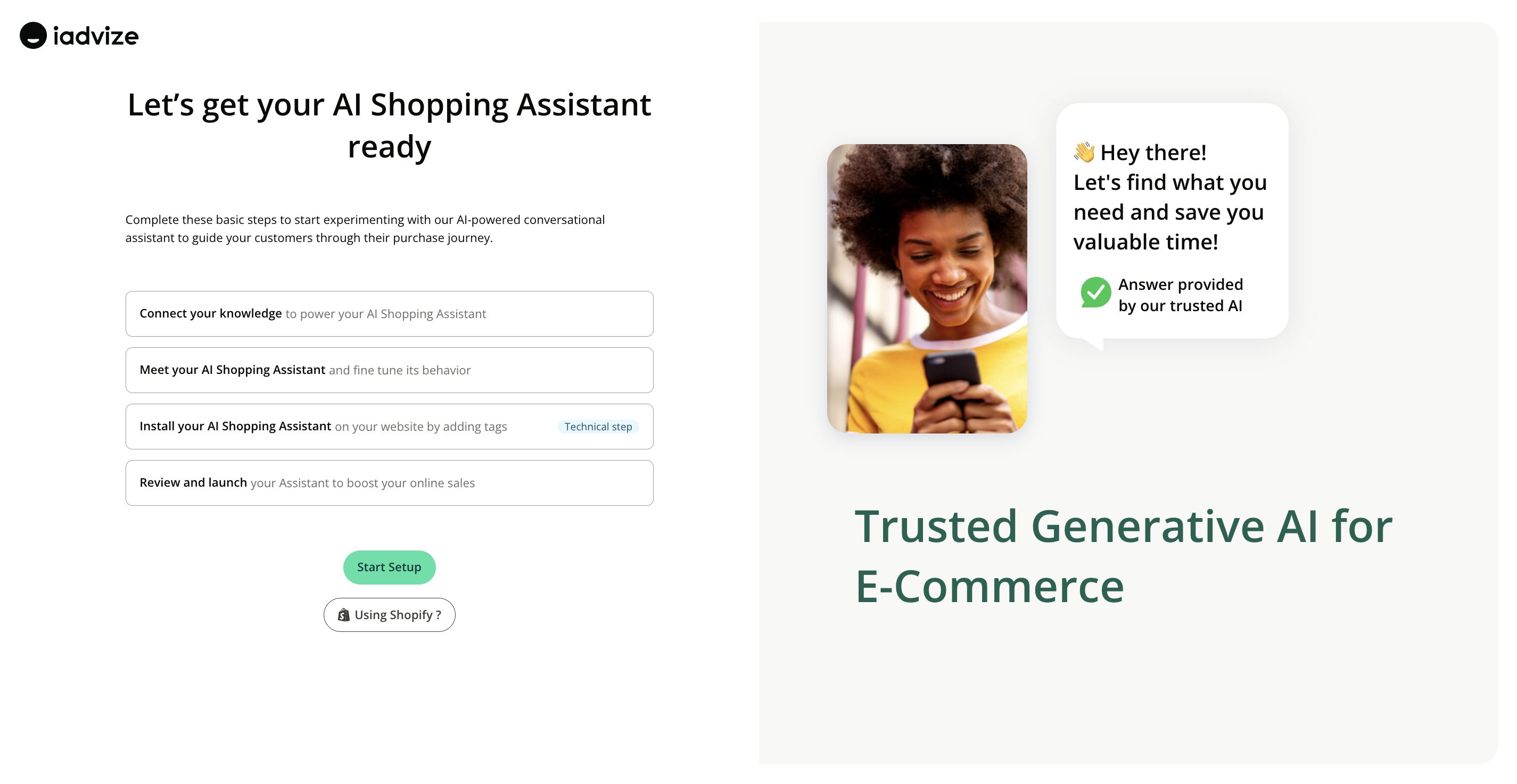 This guide explains how to connect your Shopify store to iAdvize to activate the Assistant Shopping AI on your e-commerce site in just a few clicks.