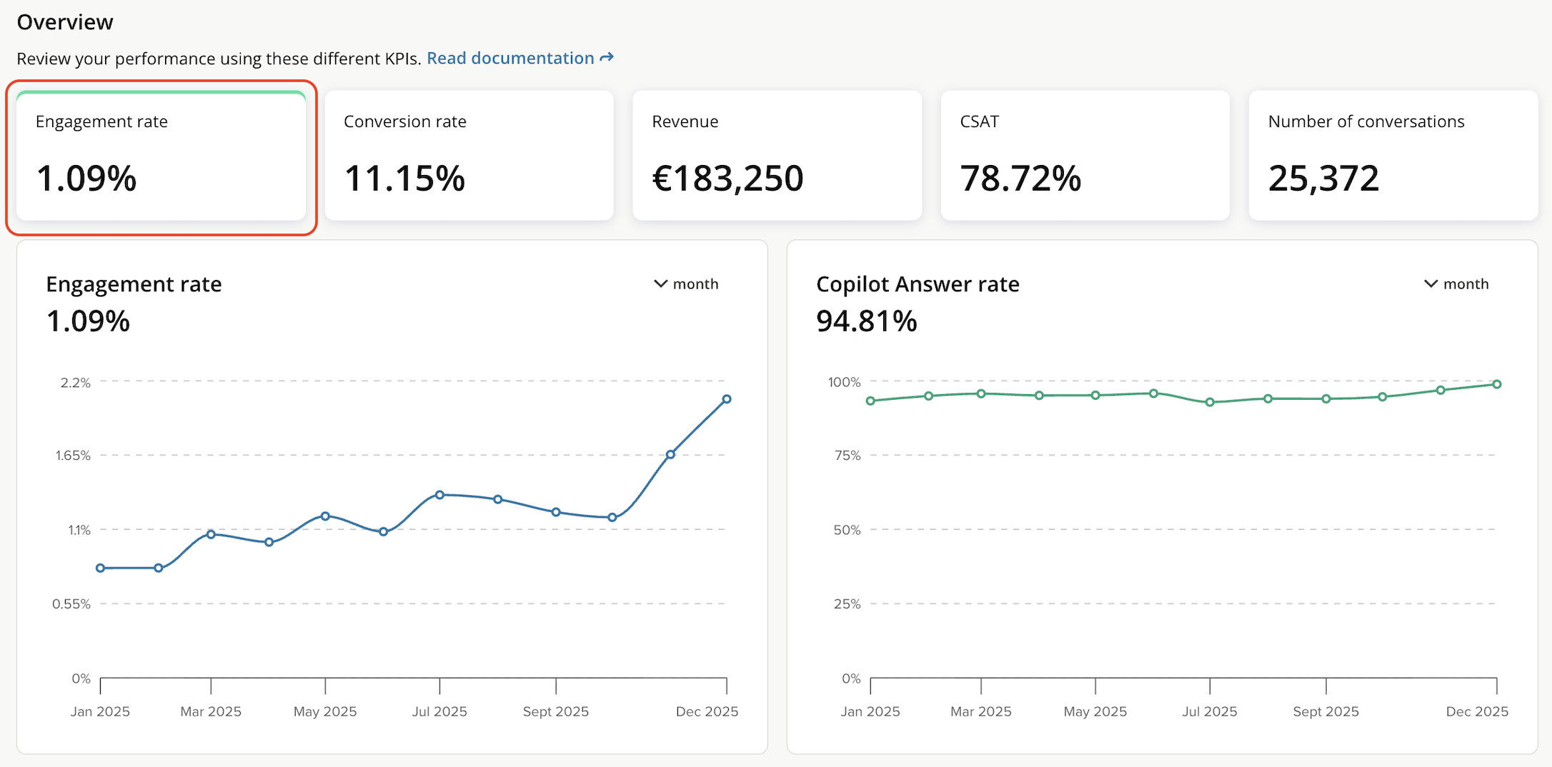 Click the indicator to see its trend, as well as the evolution of the Copilot Answer rate.