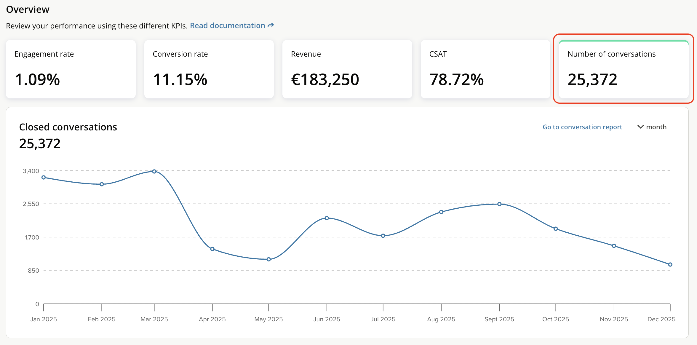 This indicator shows the total number of conversations initiated or received during the analyzed period.