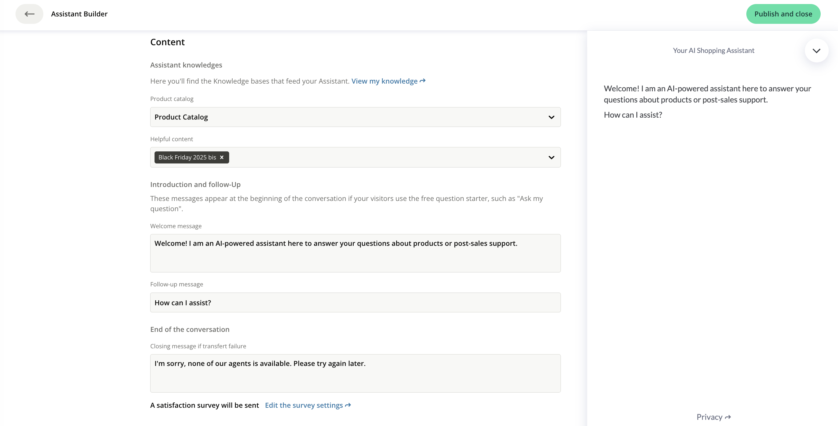 Configuring your Assistant is essential to aligning its appearance, tone, and behavior with your brand while ensuring a smooth and efficient user experience. This comprehensive guide walks you through the process step by step, helping you customize your Assistant using the Assistant Builder.