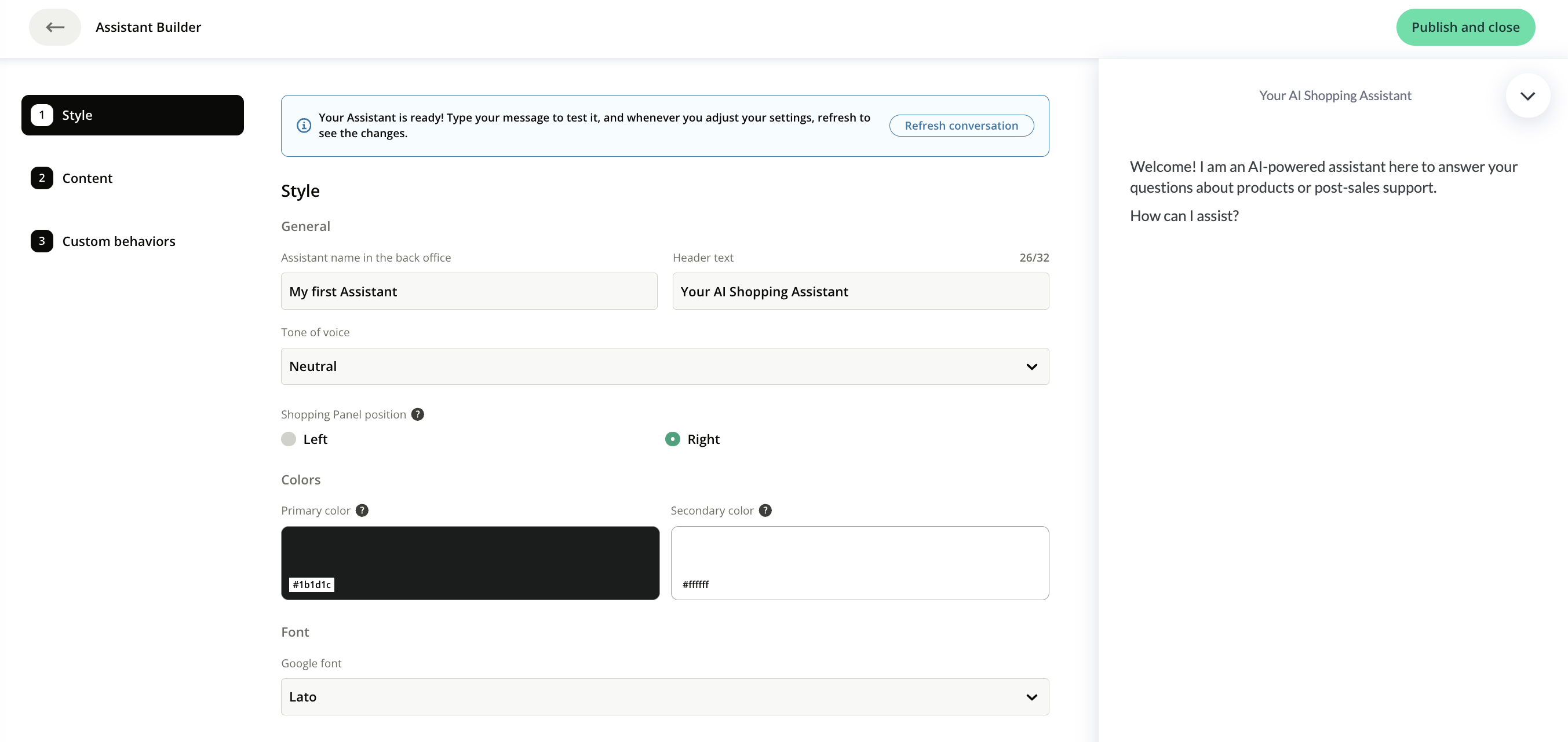 Your Assistant's style plays a key role in its effectiveness. By defining a clear and consistent identity, you strengthen visitor trust while showcasing your brand's principles and image.