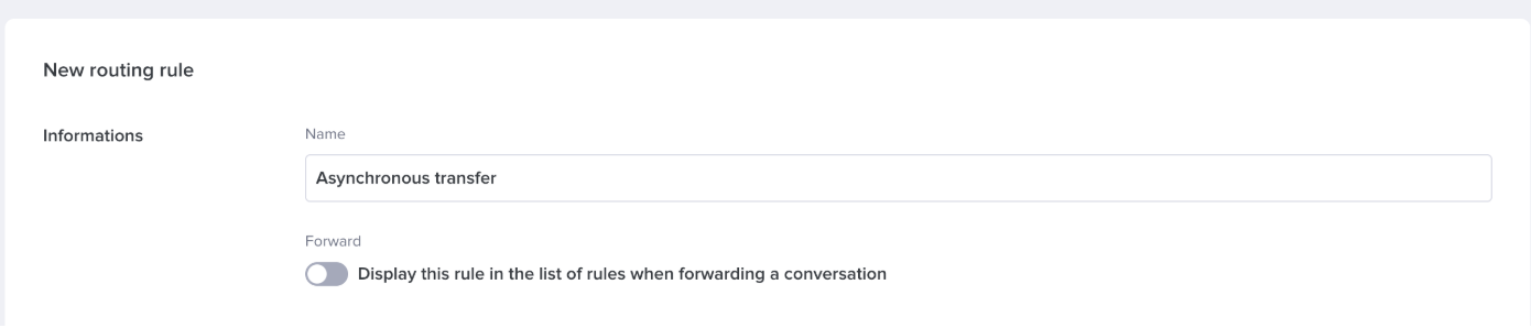 A routing rule defines how conversations are assigned to agents based on specific criteria, such as the topic of the request, availability, or required skills. In the case of asynchronous routing, a queue is set up to store conversations waiting to be handled.