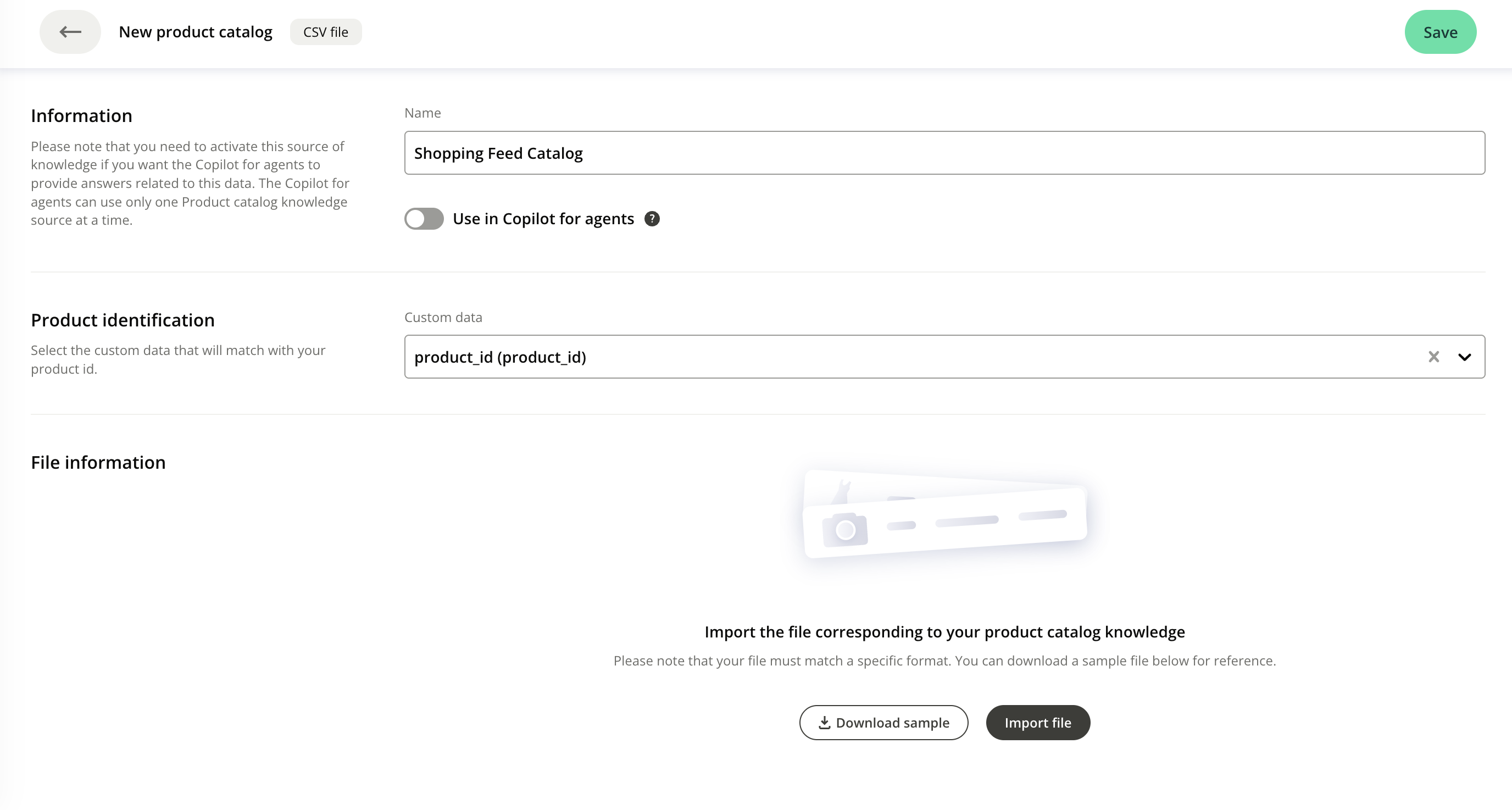 It is essential that certain key information is included in your feed for your Copilot to function optimally: product ID (id), title, description, product page link, image, and price.