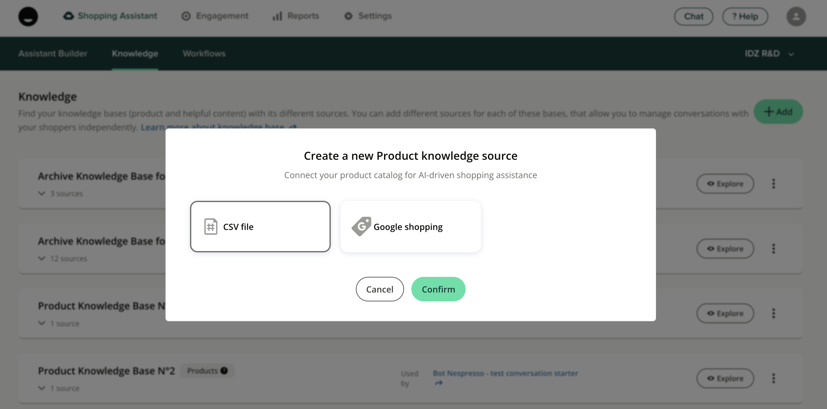 Go to your iAdvize platform: Shopping Assistant > Knowledge