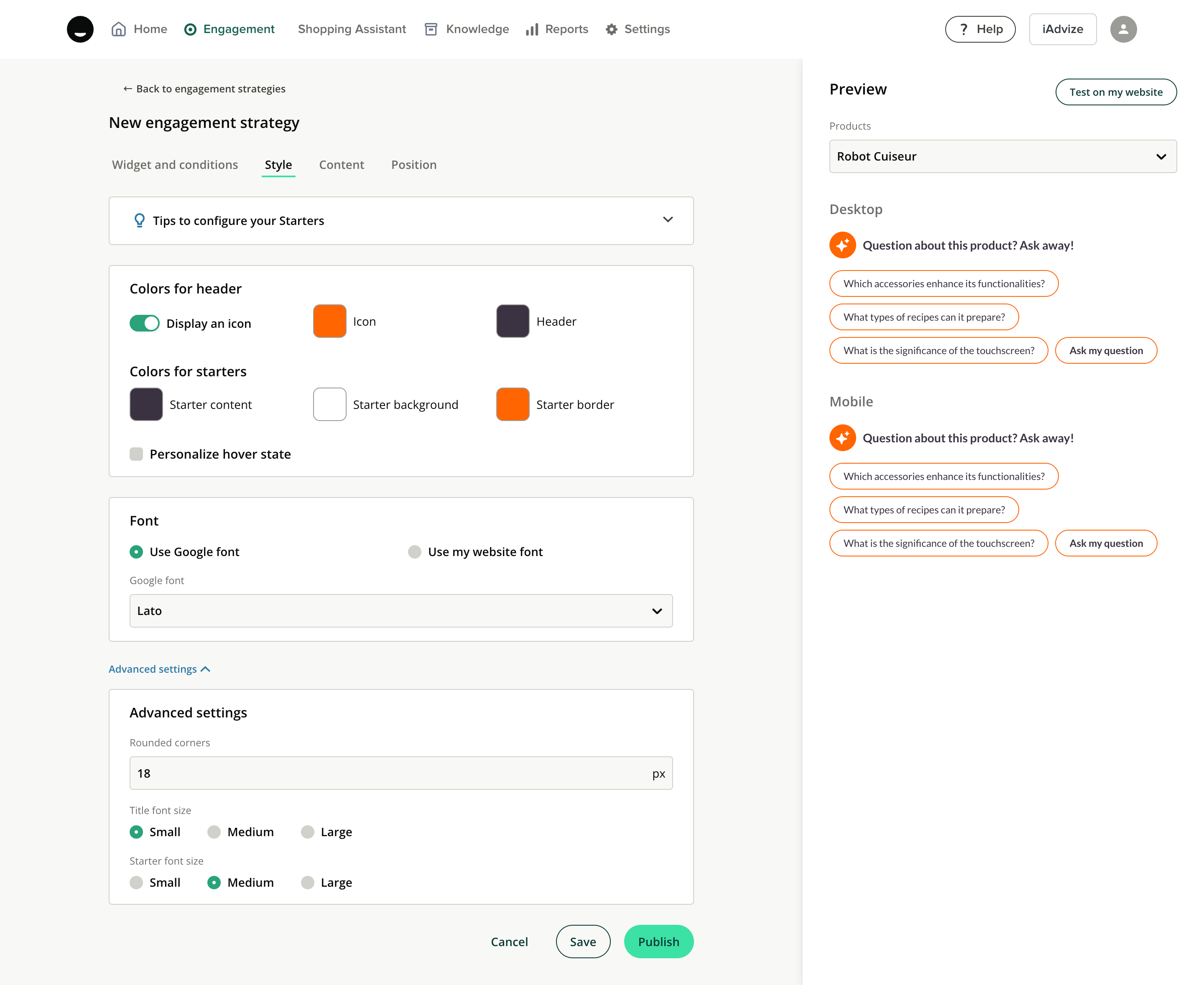- Publish: your campaign is activated and visible to your visitors immediately.