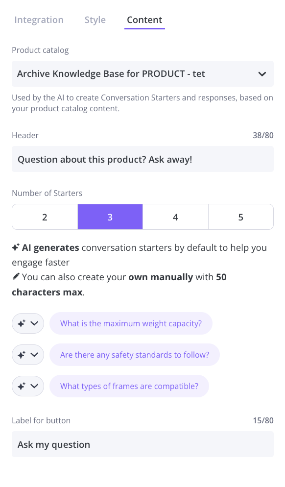 If you wish, you can also configure and activate your Conversation Starters on your Category Pages.