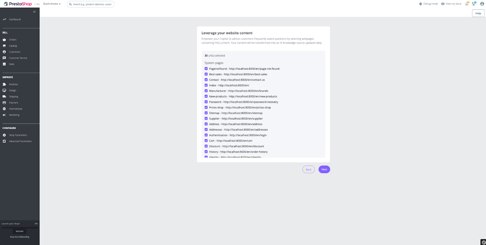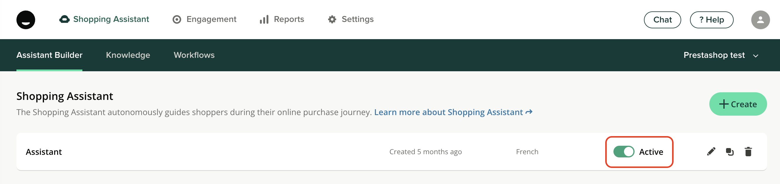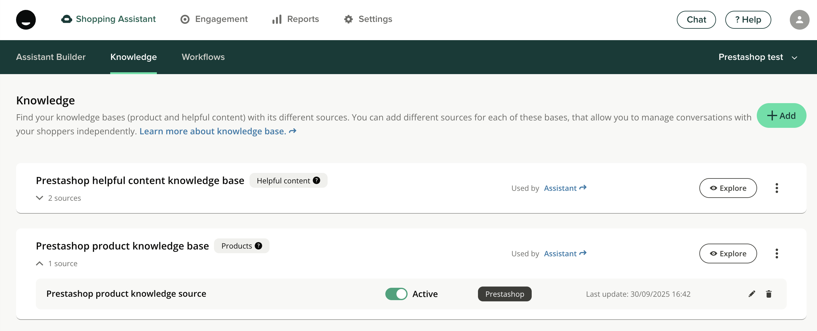 If you had already imported knowledge before installing the PrestaShop connector, make sure to disable it to ensure up-to-date knowledge based only on what is synced via your connector.