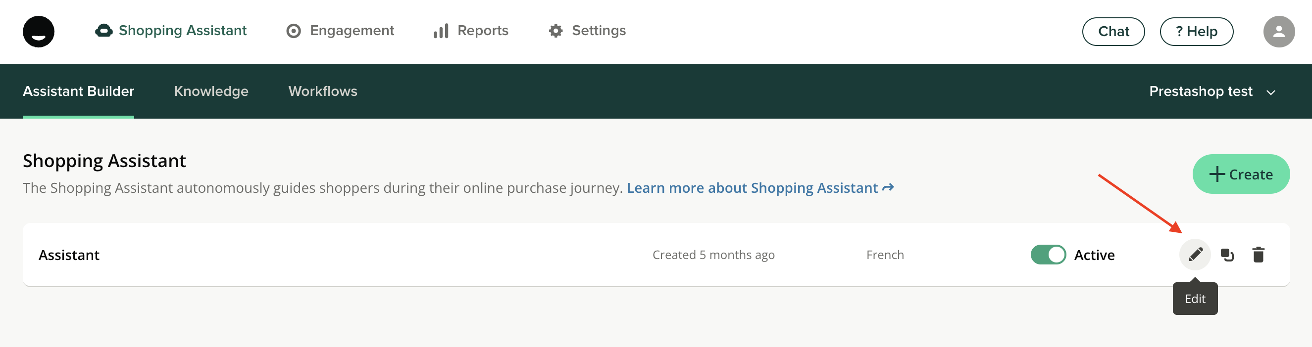 - Click the pencil icon to Edit your Assistant