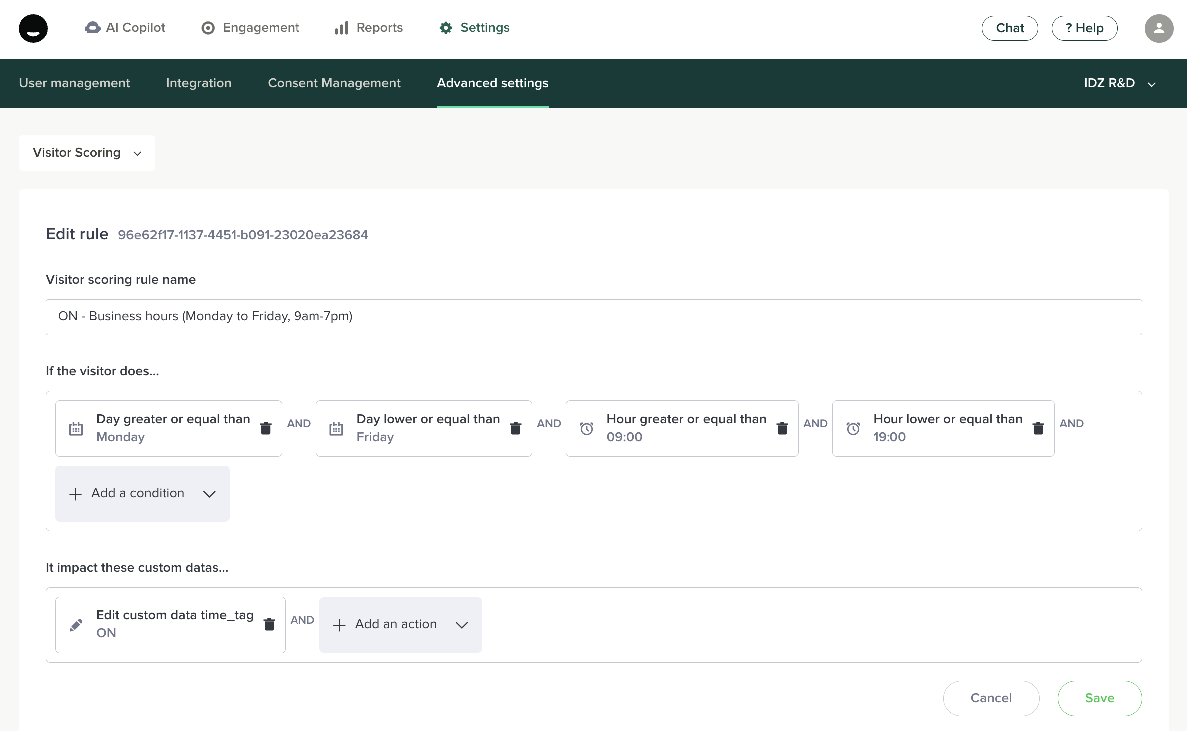- Go to Settings > Advanced settings > Visitor Scoring