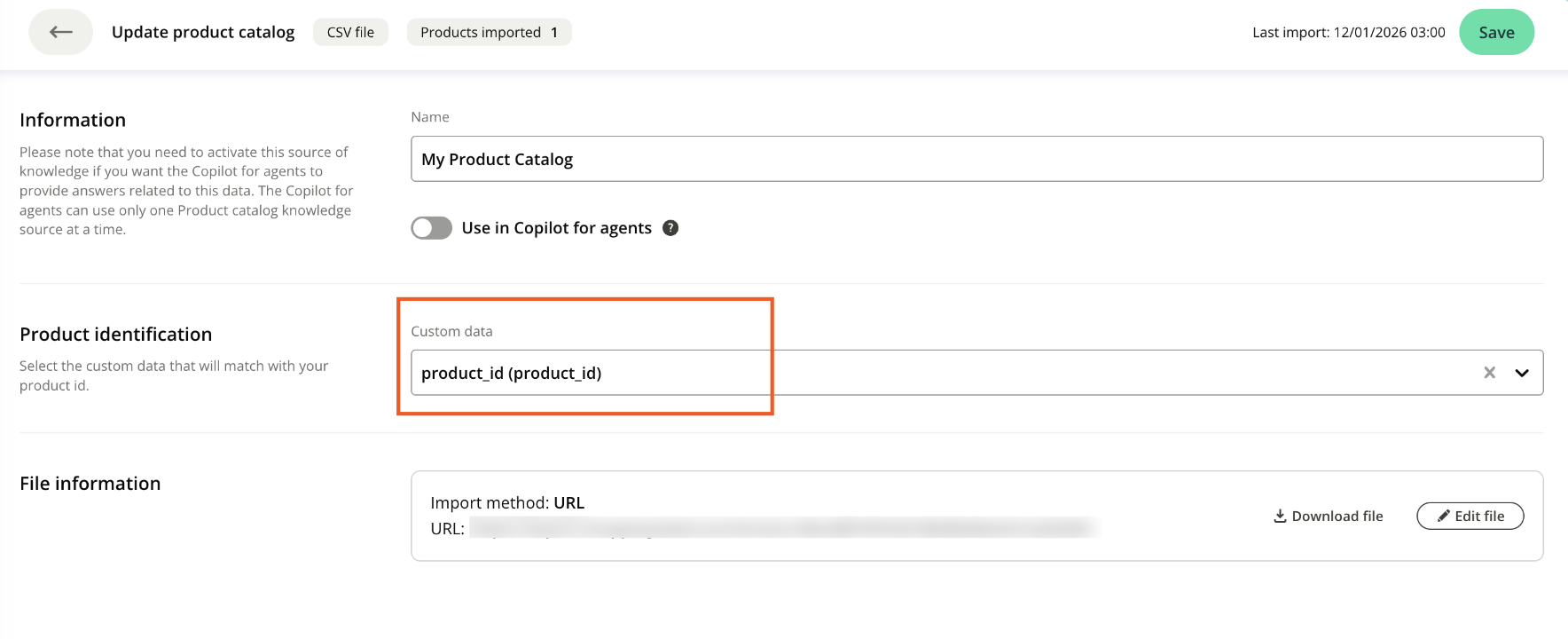 - Verify that the custom data is correctly configured with your product identifier (product_id)