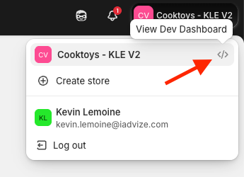 - Click on the icon to access the Dev Dashboard