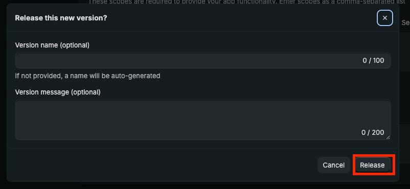 Shopify will prompt you to name and describe your version (suggested at each app update), but this is optional.