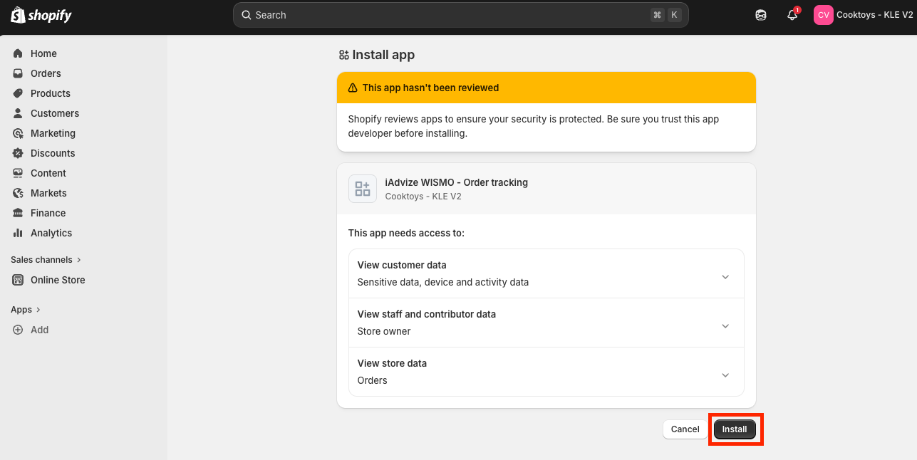 You now need to install your newly created app on your store.