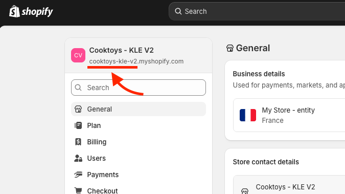 The Store name corresponds to the myshopify.com subdomain used by your store.