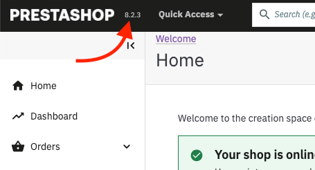 In this example, the displayed version is 8.2.3. Therefore, select "Prestashop 8.x" when installing the plugin.