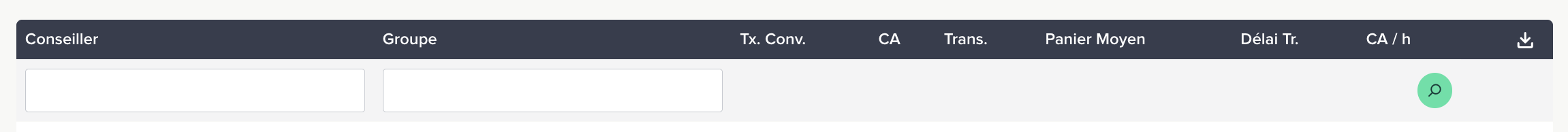 Ils vous présentent en un coup d’œil l’évolution des indicateurs ainsi que la répartition en pourcentage selon la vue sélectionnée (conseiller, règle de ciblage, etc.)