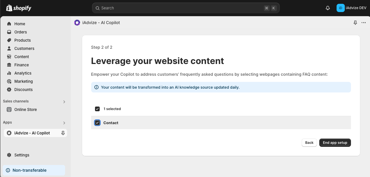 Vous n’avez aucune action à effectuer depuis iAdvize : vos connaissances sont automatiquement synchronisées avec votre boutique Shopify. Assurez-vous simplement que vos informations soient à jour dans Shopify.