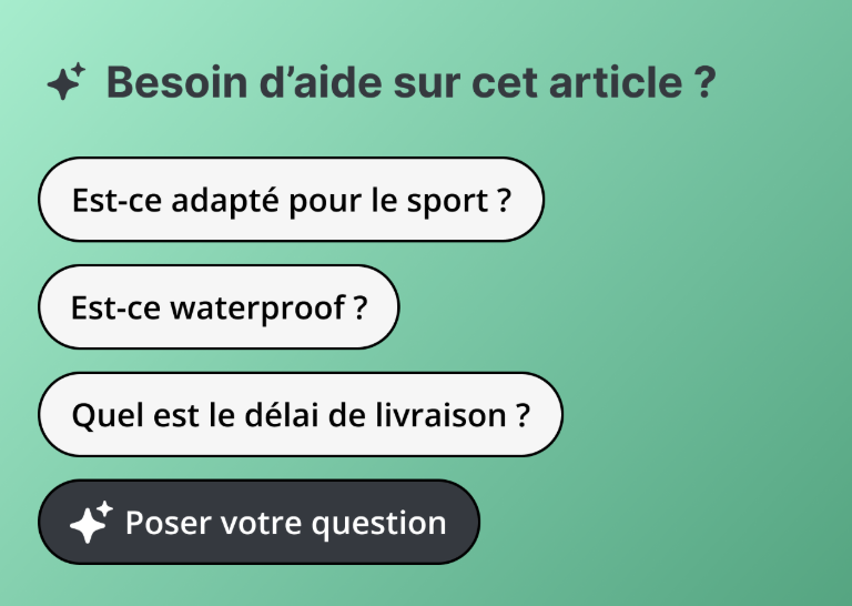 *Les Conversation Starters proposent des questions préformatées et intégrées directement aux pages produit et catégories. En ciblant proactivement les interrogations potentielles des visiteurs, comme des informations sur la composition ou des conseils d’utilisation, ils simplifient l’accès aux réponses essentielles dès l’arrivée sur le site et facilitent l’engagement des clients dans le tunnel de conversion. En savoir plus.