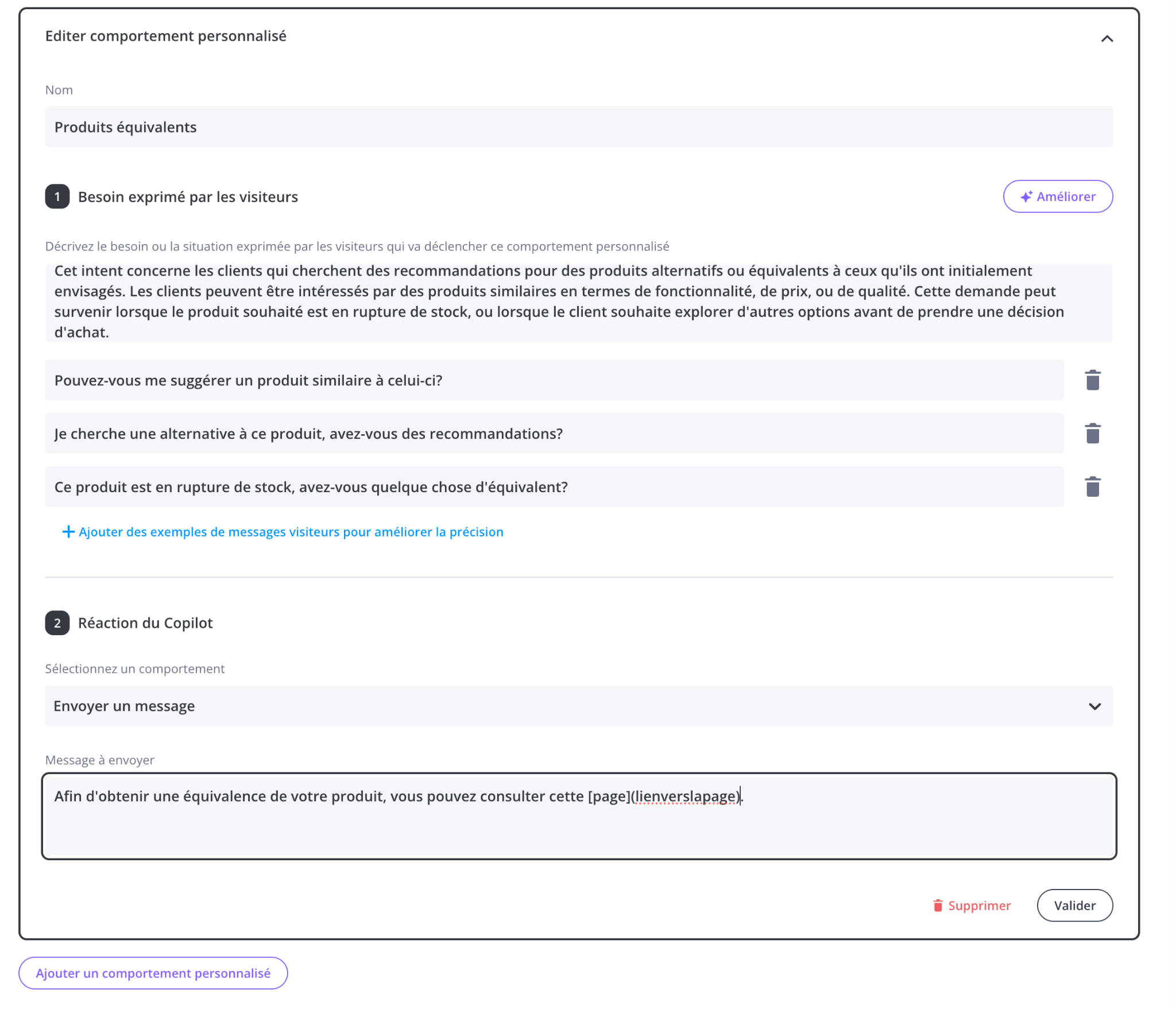 Permettent de configurer la réaction de votre Copilot face à des interactions précises (cf article)