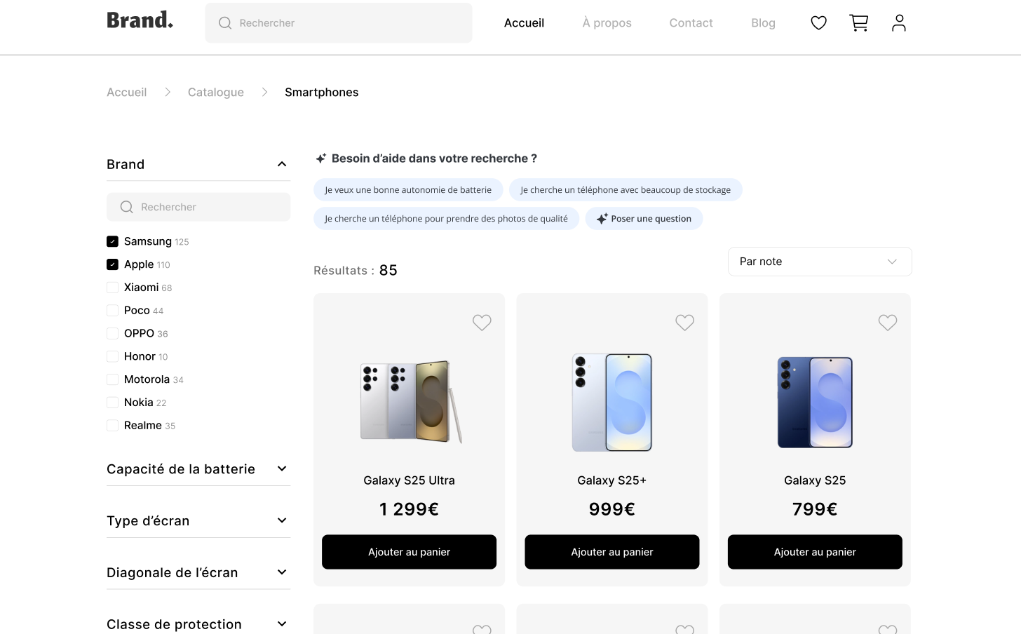 - Catégories : pour accompagner le visiteur à trouver le produit adapté à son besoin