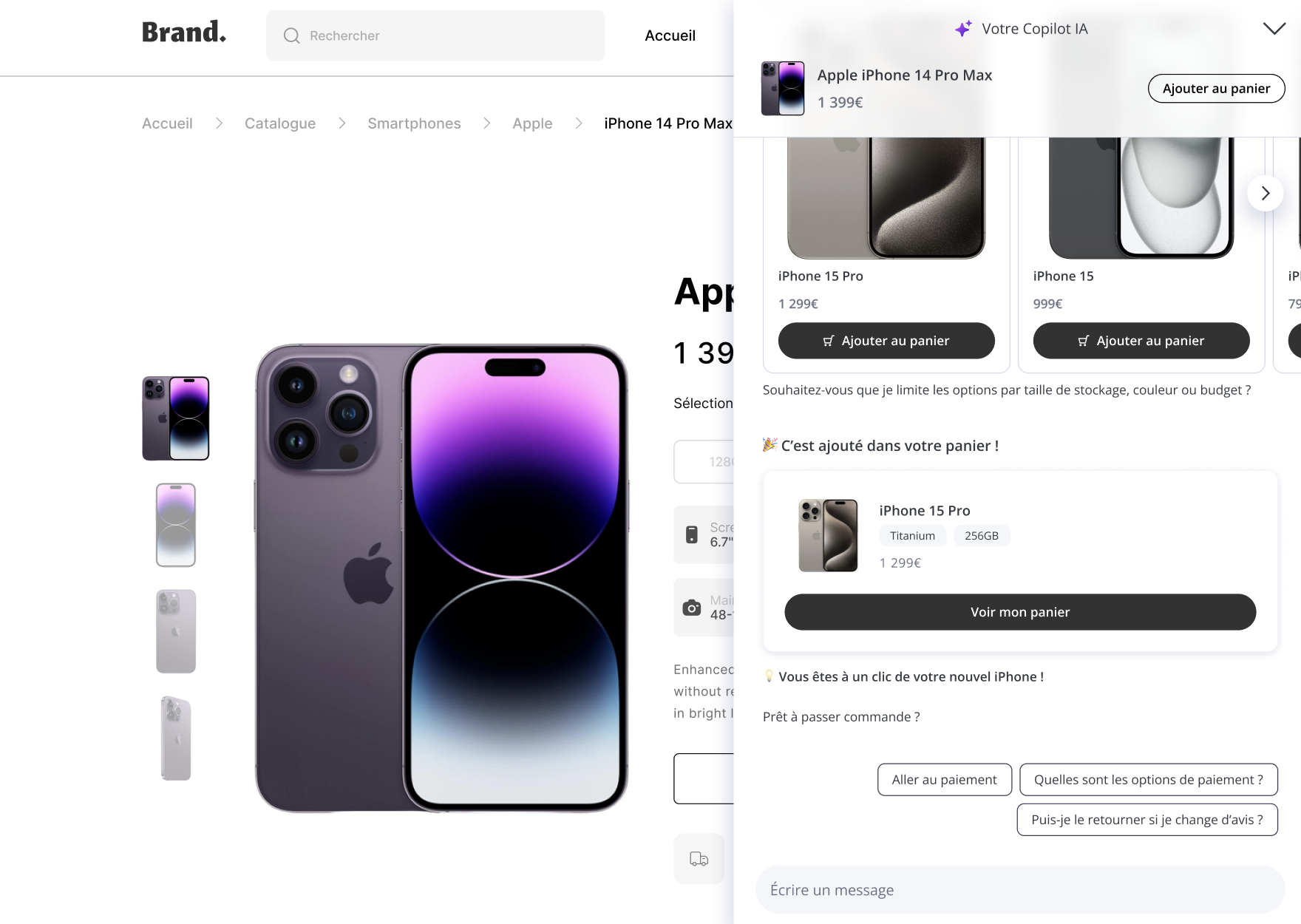 Votre Copilot recommande automatiquement des produits complémentaires en fonction du comportement ou de l’intention du visiteur.
