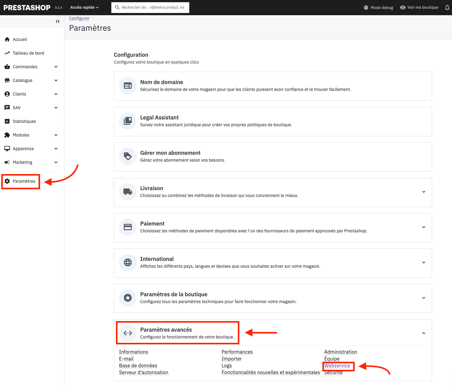- Cochez la case Activer le webservice