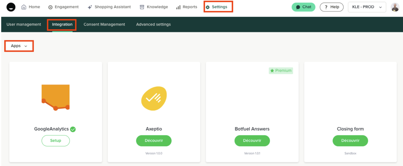 Rendez-vous dans Paramètres > Intégrations > Apps
