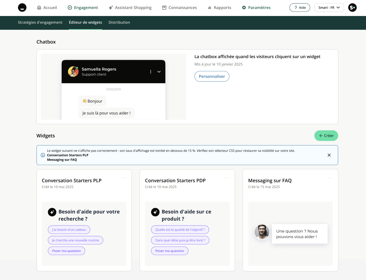 - Accédez à l'onglet Engagement > Éditeur de widget