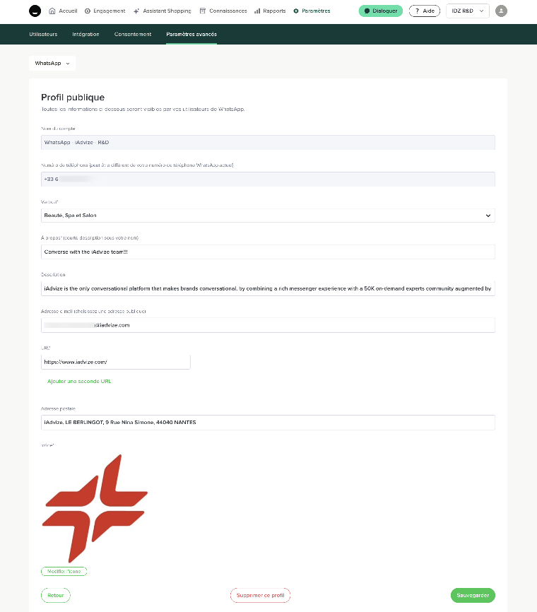 Vous possédez déjà un numéro WhatsApp et souhaitez l’utiliser avec iAdvize ? Ce guide vous accompagne pas à pas dans l’association de votre numéro à la plateforme, depuis la configuration initiale jusqu’à la personnalisation de votre profil WhatsApp Business.